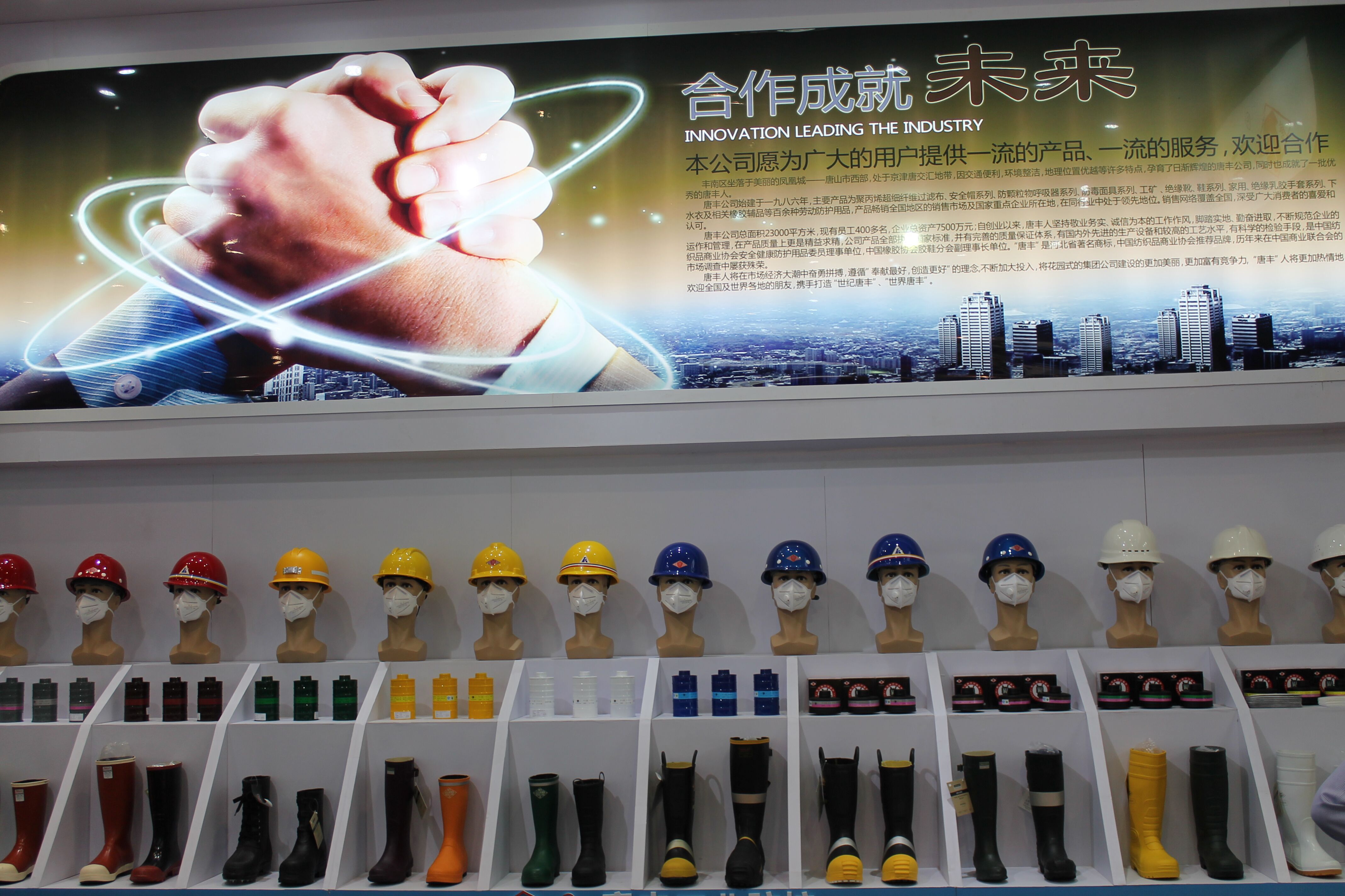 参展产品:安全帽、自吸过滤式防颗粒物呼吸器、防毒全面罩、半面罩、胶靴类
