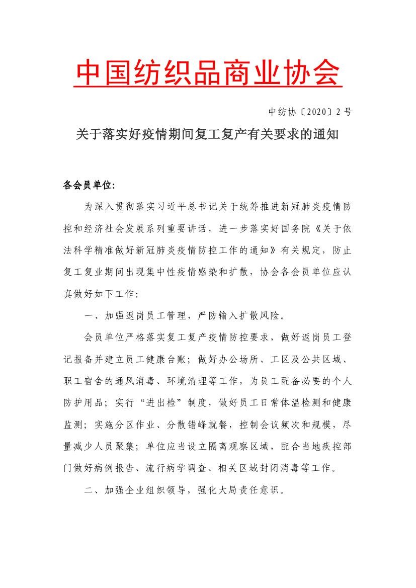 为深入贯彻落实习近平总书记关于统筹推进新冠肺炎疫情防控和经济社会发展系列重要讲话,进一步落实好国务院《关于依法科学精准做好新冠肺炎疫情防控工作的通知》有关规定,防止复工复业期间出现集中性疫情感染和扩散,协会各会员单位应认真做好如下工作: