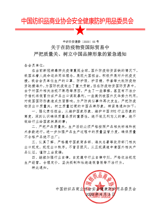 紧急通知 | 关于在防疫物资国际贸易中 严把质量关、树立中国品牌形象的紧急通知